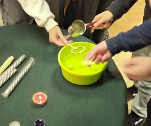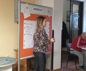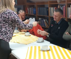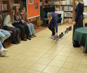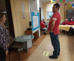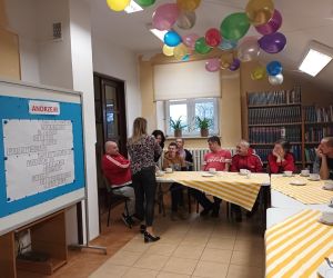 W trakcie spotkania wspólnie porozmawialiśmy o tym, z czym kojarzą nam się Andrzejki, poznaliśmy etymologię imienia Andrzej, historię św. Andrzeja oraz historię świętowania Andrzejek w Polsce. Razem z naszymi gośćmi omówiliśmy znane w naszym regionie wróżby andrzejkowe i rozwiązaliśmy krzyżówkę. Uczestnicy chętnie wzięli udział w przygotowanych przez prowadzącą wróżbach: „Rzut monetą do wody”, „Andrzejkowe serce i szpili” oraz „Wyścig butów”.