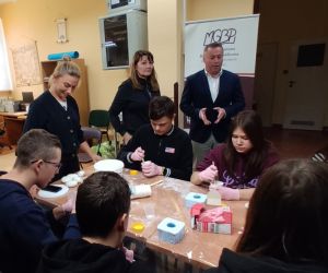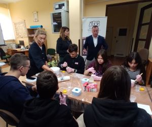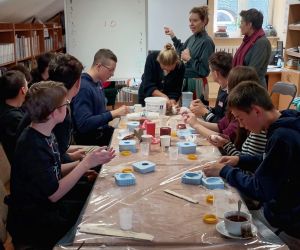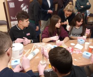 Uczestnicy zajęć mogli zapoznać się z kulturą żydowską oraz własnoręcznie wykonać odlew kamieni, które zostaną wykorzystane 7 listopada 2023 r. podczas uroczystości odsłonięcia pomnika upamiętniającego ofiary zagłady.