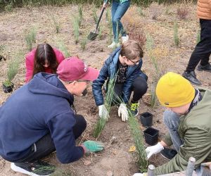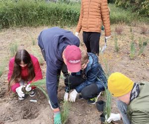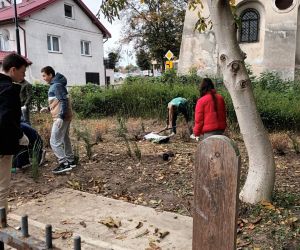 Uczniowie biorący udział w warsztatach uporządkowali teren w pobliżu łęczyńskiej synagogi, gdzie podczas II wojny światowej hitlerowscy żołnierze dokonali mordu na łęczyńskiej społeczności żydowskiego w trakcie likwidacji getta.