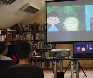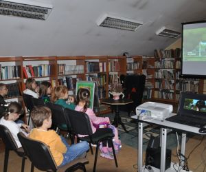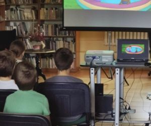 Podczas spotkania w Bibliotece dzieci miały także okazję obejrzeć film pt. "Moja mama Gorylica", do którego Biblioteka otrzymała dostęp w związku z udziałem w Nocy Bibliotek.