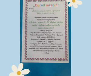 Wystawa została zorganizowana na zakończenie projektu „Dzieci z grupy II i III dbają o piękny ogród - miejsce odpoczynku dla naszych zmysłów.”