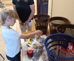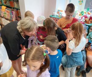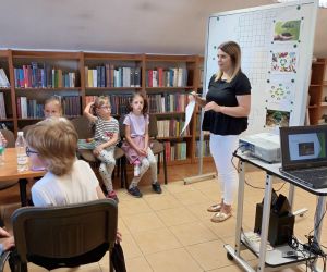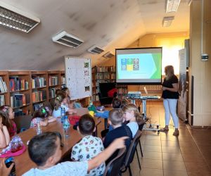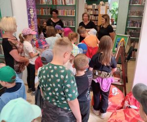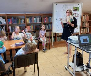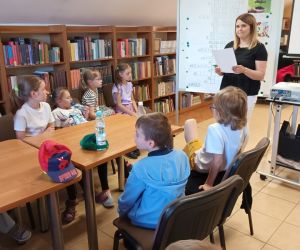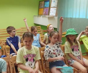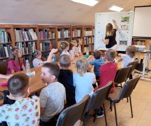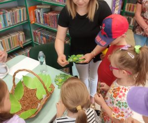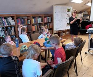 19 czerwca w Bibliotece Głównej gościliśmy uczniów klasy 1d ze Szkoły Podstawowej nr 2 im. Tadeusza Kościuszki w Łęcznej. Tematem spotkania była ekologia, ekologiczny styl życia, właściwa segregacja odpadów oraz postawy proekologiczne. Nasi Goście aktywnie wzięli udział w pogadance o tym, co każdy z nas może zrobić dla dobra ziemi i klimatu oraz z uwagą wysłuchali książeczki pt. „Segreguję śmieci. Dbam o środowisko” M. Gruca, którą przeczytała Dyrektor MGBP pani Monika Mazurkiewicz. Dzieci wspólnie rozwiązały krzyżówkę i wykonały zadanie „Posegreguj odpady we właściwy sposób”. Uczniowie klasy 1d z radością zmierzyli się z zadaniem-zagadką „Historia zaginionych żabek” i sprawnie odnaleźli wszystkie ukryte w bibliotece żabki.
