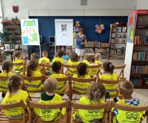 Dzieci z grupy „Maleństwa” z Przedszkola Publicznego nr 3 w Łęcznej wraz z panią Ewą Kalitą w dniu 20 czerwca odwiedziły bibliotekę, by wziąć udział w zajęciach poświęconych bezpiecznemu zachowaniu podczas wakacji. Bibliotekarka przeczytała wiersz pt.” Bezpieczne wakacje” A. Bober. Dzieci chętnie odpowiadały na zadawane pytania dotyczące bezpieczeństwa . Obejrzały kącik z książkami dla dzieci i dowiedziały się o pracy w bibliotece.