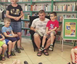 W upalne czwartkowe przedpołudnie 22 czerwca 2023 r. spotkaliśmy się w Bibliotece przy ul. Bożnicznej 21, z dziećmi z grup: „Muchomorki” oraz „Słoneczka” z Przedszkola Publicznego nr 1 w Łęcznej na głośnym czytaniu. Do udziału w akcji #TataTeżCzyta zaprosiliśmy Pana Tomasza Kwiatkowskiego, tatę Ignasia z grupy „Muchomorki”. Pan Tomasz, który bardzo często przychodzi ze swoim synem do biblioteki , z wielką przyjemnością przeczytał dzieciom książkę pt. „Dzień z tatą” autorstwa K. Richardsa. Przedszkolaki z ogromnym zainteresowaniem słuchały uroczej opowieści o zabawnym zajączku i jego tacie, a następnie odpowiadały na pytania bibliotekarki. Wybór książki do czytania nie był przypadkowy, bowiem jutro obchodzimy Dzień Taty. Podczas spotkania był czas na słuchanie piosenek o tacie oraz wspólne rozmowy. Na zakończenie dzieci otrzymały zakładki z logo akcji oraz słodką niespodziankę. Miłym akcentem spotkania było wspólne wyjście z „Muchomorkami” na pyszne lody.