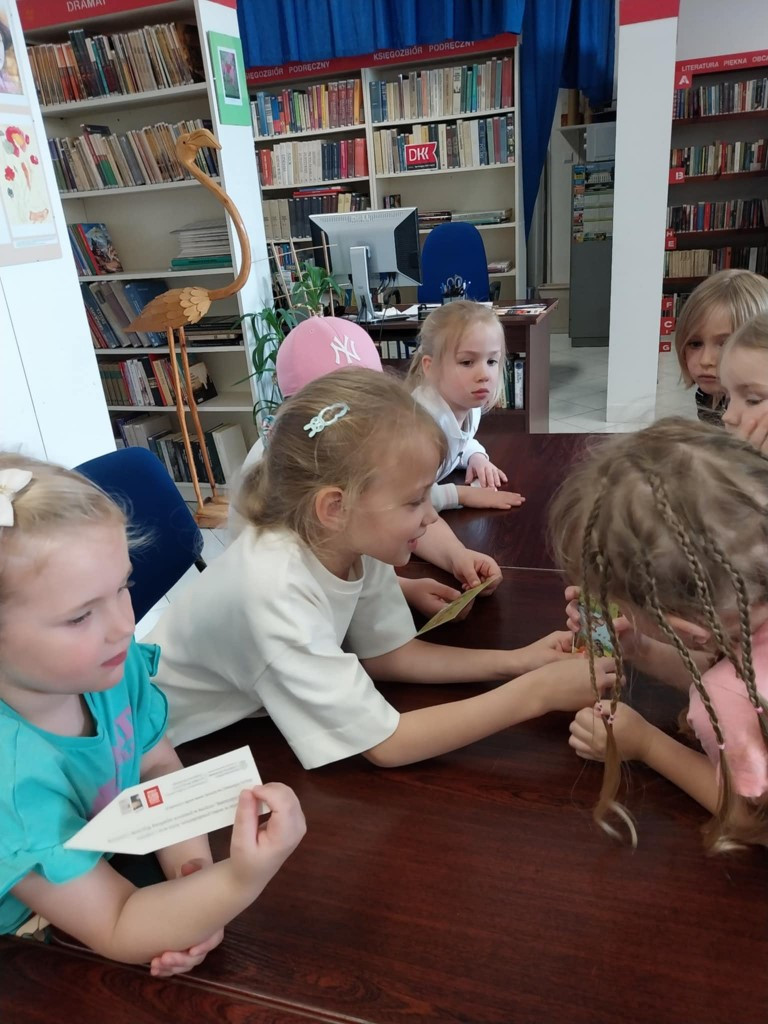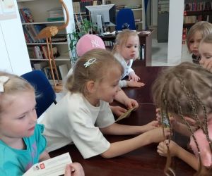 W dniu 18 czerwca bibliotekę odwiedziły dzieci z grupy „Żabki” z Przedszkola Publicznego nr 4. Przedszkolaki odgadywały zagadki dotyczące bajek. Chętnie brały udział w zabawie w zgaduj- zgadula i wykazały się dużą znajomością baśni i bajek. W nagrodę otrzymały zakładki do książek. Na koniec spotkania bibliotekarka zachęciła dzieci, aby w okresie letnim odwiedzały bibliotekę z rodzicami lub dziadkami.