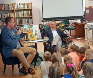 Następnie głos zabrał pan Tomasz Błaszczyk, tata Alka z grupy „Krasnoludki”. Przeczytał dzieciom opowieść „Franklin i dzień z tatą”, niosącą piękne przesłanie – najważniejsze jest to, by spędzać czas razem. Pan Tomasz podzielił się również z dziećmi swoimi ulubionymi wierszami z dzieciństwa: „Przyjście lata” Jana Brzechwy oraz „Mija roczek szkolny” Ludwika Wiszniewskiego.