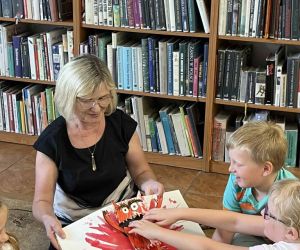 W słoneczne popołudnie, 17 czerwca 2025 r., w ogrodzie za budynkiem biblioteki odbyło się wyjątkowe spotkanie z uczniami z pierwszej grupy świetlicowej ze Szkoły Podstawowej nr 2 w Łęcznej, którzy przybyli wraz z wychowawczynią, Panią Anną Kustrą. Wśród soczystej zieleni zorganizowano przestrzeń do wspólnego czytania, co było nie lada atrakcją dla najmłodszych uczestników.