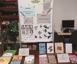 Z okazji Międzynarodowego Dnia Poezji, 21 marca Czytelnicy odwiedzający Filię nr 2 przy ul. Obrońców Pokoju 1 mogli wziąć udział w przygotowanej zabawie i rozwiązać dwa zadania związane z polskimi poetami: „ Czy znasz polskich poetów?” oraz „Jaki poeta jest na obrazku?”.