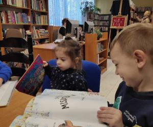 W dniu 8 lutego dzieci z grupy "Zajączki" odwiedziły naszą Filię. Poznały zasady zachowania się w bibliotece i korzystania z książek i czasopism. Widziały jak obsługiwany jest czytelnik, miały możliwość wczytywania kodów na książkach. Pani bibliotekarka wyjaśniła różnice między księgarnią a biblioteką. Zachęcała dzieci do zapisywania się i wypożyczania książek. Dzieci wysłuchały opowiadania " Jak zajączek szukał drogi do domu". Na koniec każde dziecko dostało szablon zakładki do książki do pokolorowania w przedszkolu.