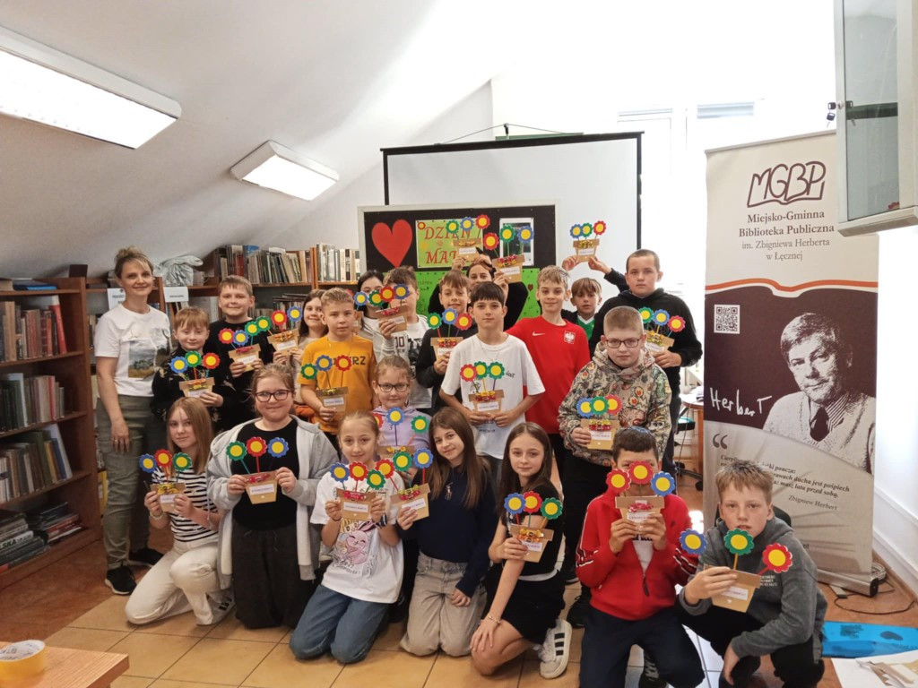 21 maja 2025 r. w Bibliotece Głównej przy ul. Bożnicznej gościliśmy uczniów klasy 4A ze Szkoły Podstawowej nr 2 w Łęcznej wraz z wychowawczynią. Spotkanie odbyło się w ramach warsztatów poświęconych zbliżającemu się Dniu Matki.