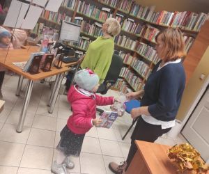 Tak się złożyło, że dzisiejsze wypożyczanie zbiegło się z obchodzonym wczoraj Dniem Edukacji Narodowej. Bardzo miłym akcentem zakończyły się więc dzisiejsze wizyty przedszkolaków w bibliotece, gdyż otrzymałyśmy na koniec wspaniałe życzenia od naszych najmłodszych czytelników wraz ze słodkim upominkiem. Serdecznie dziękujemy. My również życzymy Dyrekcji i całemu Gronu Pedagogicznemu Przedszkola Prywatnego Mali Odkrywcy samych sukcesów wychowawczych.