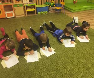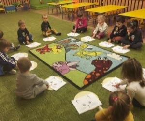 Wybór książki na lutowe czytanie nie był przypadkowy, ponieważ w tym miesiącu obchodzimy święto kotów - najbardziej popularnych zwierząt domowych. Ze względu na panującą pandemię, bibliotekarka nagrała czytanie, które zostało odtworzone w grupach przedszkolaków. Dzieci uważnie słuchały opowiadania, co widać na zamieszczonych zdjęciach, a następnie wykonywały prace plastyczne.