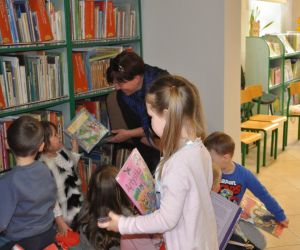 Na początku spotkania bibliotekarka przeczytała dzieciom książeczkę z serii: Przygody Fenka pt. "Biblioteka", wprowadzając w magiczny świat bibliotecznych książek.