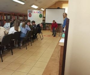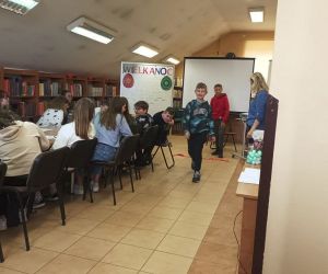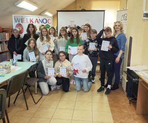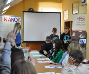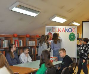 W dniu 12.04.2022 r. Bibliotekę Główną przy ul. Bożnicznej 21 odwiedziła klasa 5 b ze Szkoły Podstawowej Nr 2 w Łęcznej z nauczycielami. Uczniowie wzięli udział w zajęciach dotyczących Świąt Wielkanocnych. Dzieci opowiadały z czym kojarzą im się święta Wielkiej Nocy, obejrzały film dotyczący zwyczajów wielkanocnych, a następnie czytały wiersze o Wielkanocy i wiośnie autorstwa Marii Konopnickiej. Były także konkurencje ruchowe i odgadywanie zagadek wielkanocnych, za które uczniowie otrzymywali czekoladowe pisanki. Na koniec zajęć, przy miłych melodiach piosenek wielkanocnych, uczniowie wykonywali kartki wielkanocne.