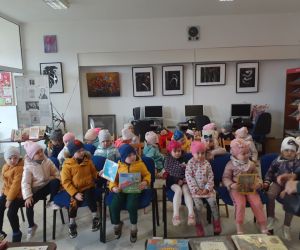 Przedszkolaki z wielką radością zapoznały się z magicznym dla nich miejscem. Dla zdecydowanej większości była to pierwsza wizyta wśród tylu książek. Tematem spotkania było zapoznanie maluchów z biblioteką. Dzieci z wielkim zainteresowaniem przeglądały książki znajdujące się na półkach w dziale dla najmłodszych. Następnie wypożyczyły książki do przedszkola z obietnicą na następne spotkanie w bibliotece.