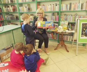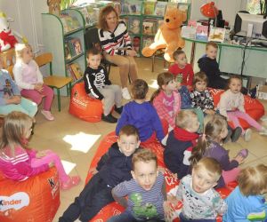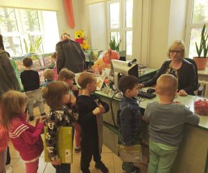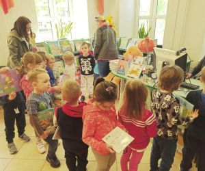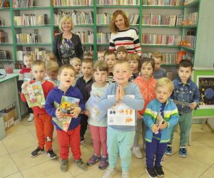 Przy okazji wizyty w bibliotece każde dziecko wypożyczyło sobie książkę a na zakończenie spotkania przedszkolaki otrzymały kolorowe zakładki do książek i słodką niespodziankę.