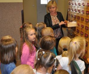 Przedszkolaki dowiedziały się też, jak wyglądała praca bibliotekarza przed komputeryzacją i jak wygląda teraz. Zobaczyły katalog z magicznymi szufladkami pełnymi kart, a następnie miały możliwość wypożyczyć sobie samodzielnie książkę używając czytnika kodów kreskowych.