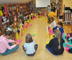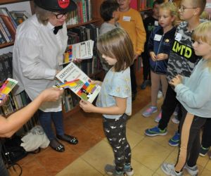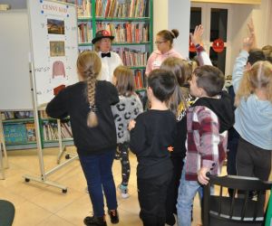 W Bibliotece było gwarno i bardzo wesoło. Dzieci miały okazję poznać tajniki pracy technika kryminalistyki, wysłuchać głośnego czytania, podążać tropem zagadek, rozszyfrować cenny kod i uwolnić książki. Było dużo kreatywnych zabaw oraz projekcja filmu "Biuro detektywistyczne Lassego i Mai".