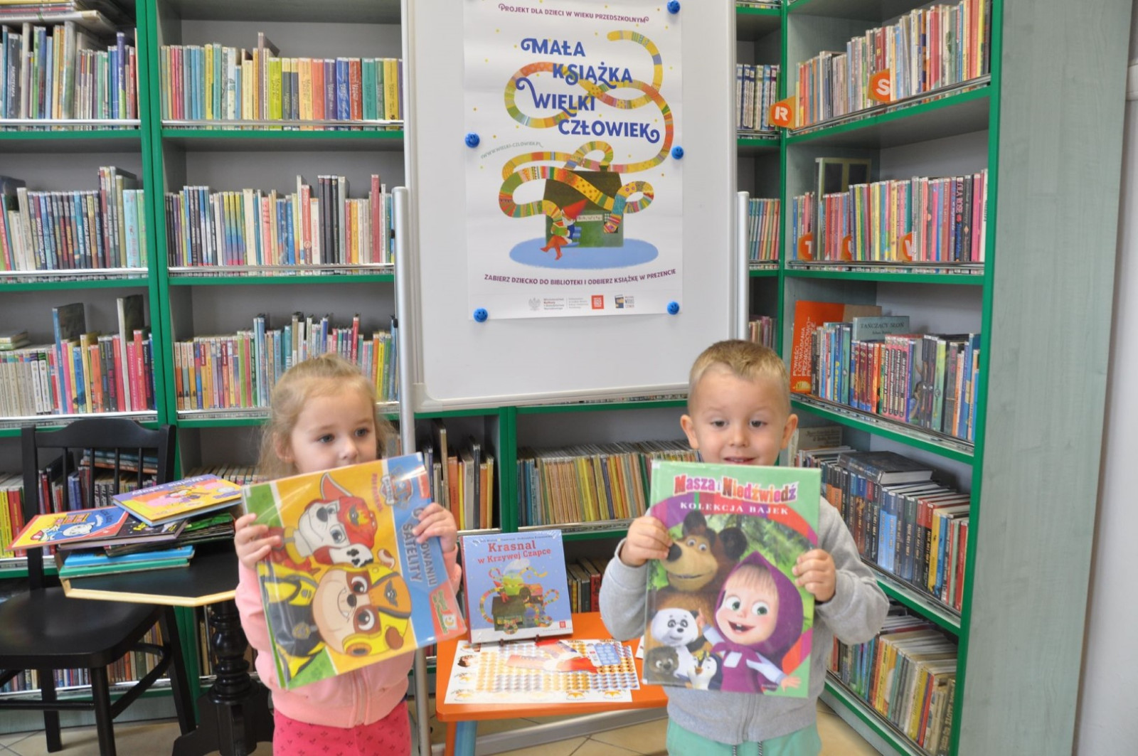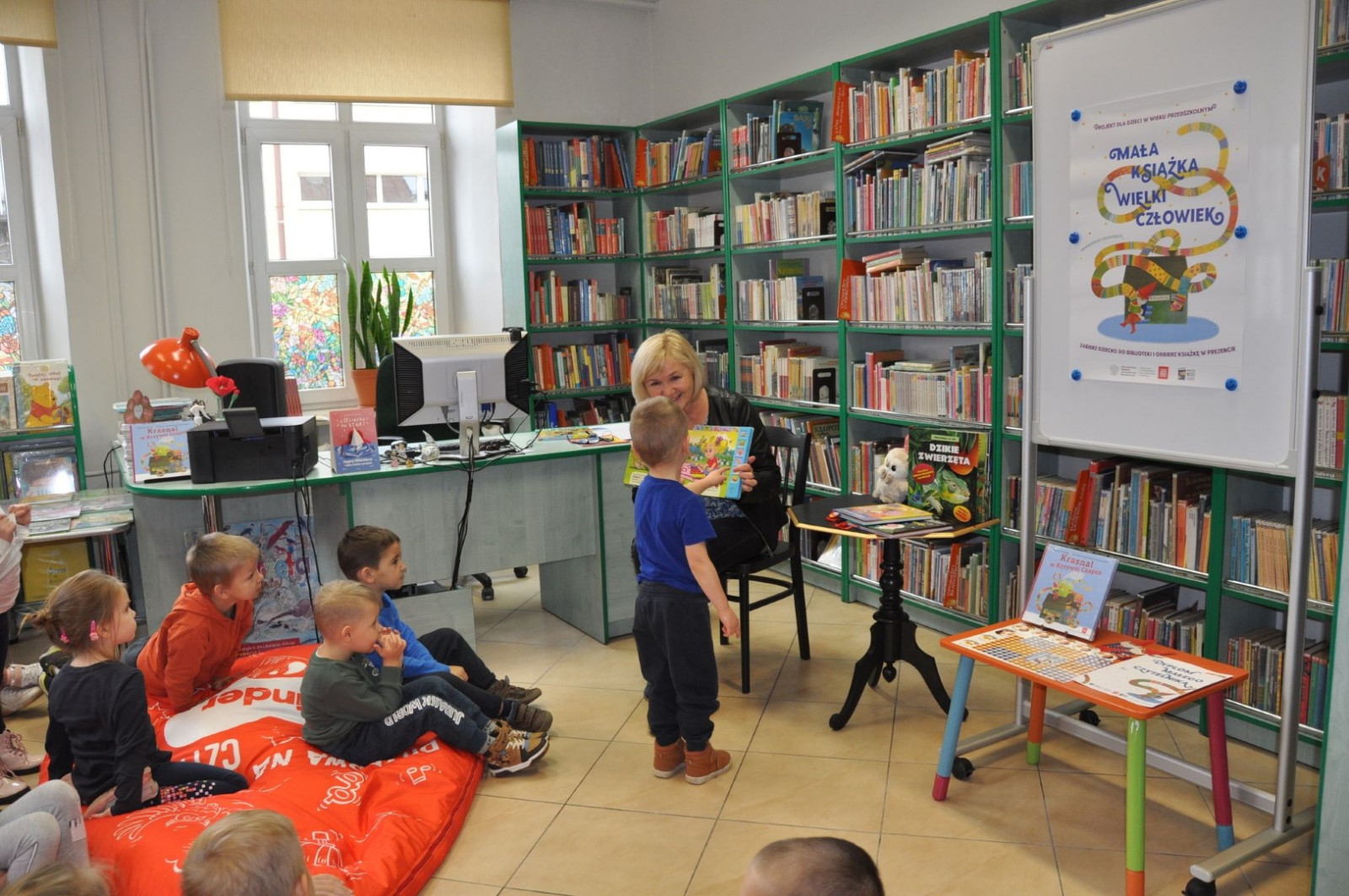 Bibliotekarka zachęciła dzieci do udziału w V edycji ogólnopolskiej akcji „Mała książka- wielki człowiek” przeznaczonym dla przedszkolaków.