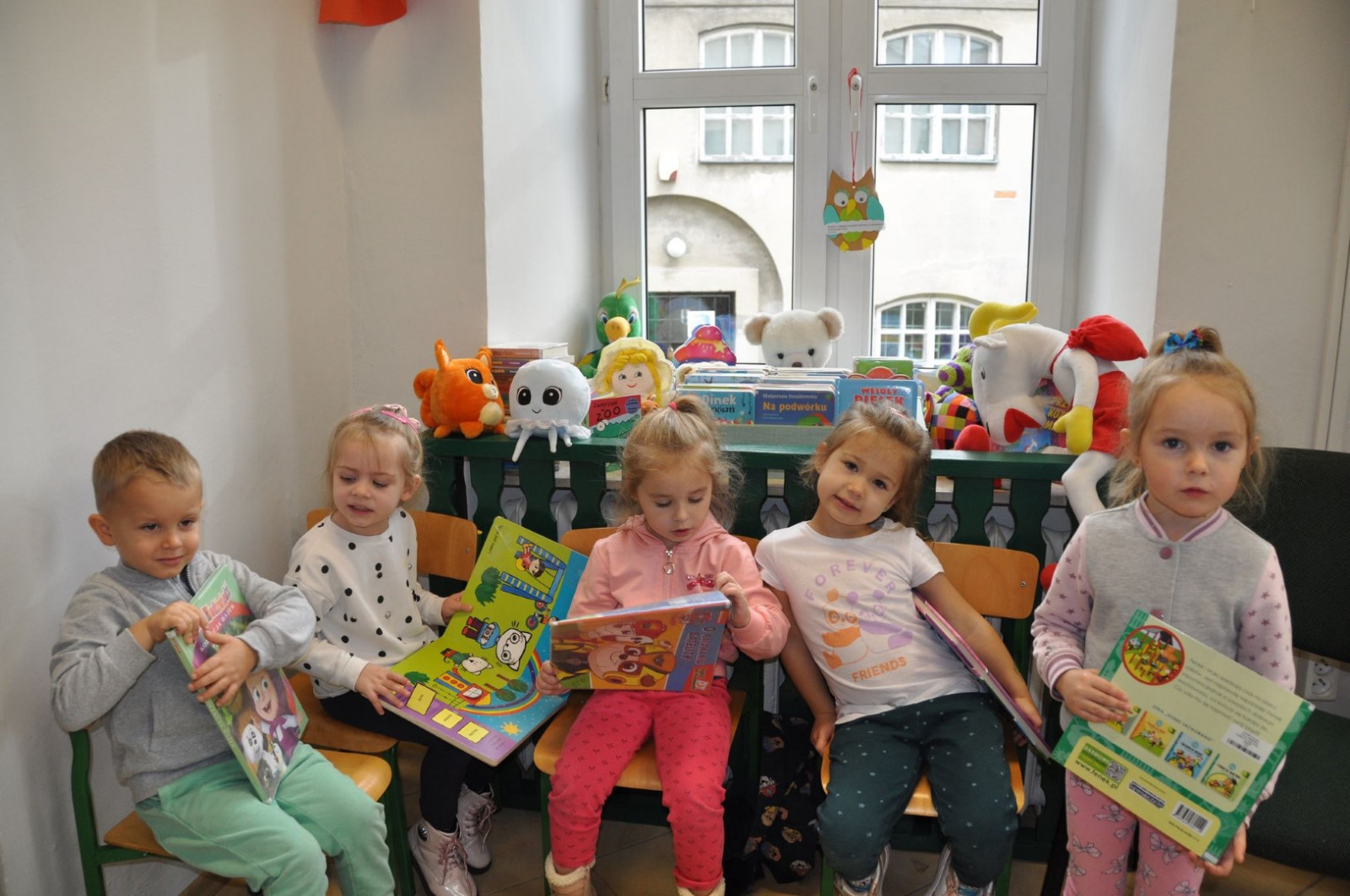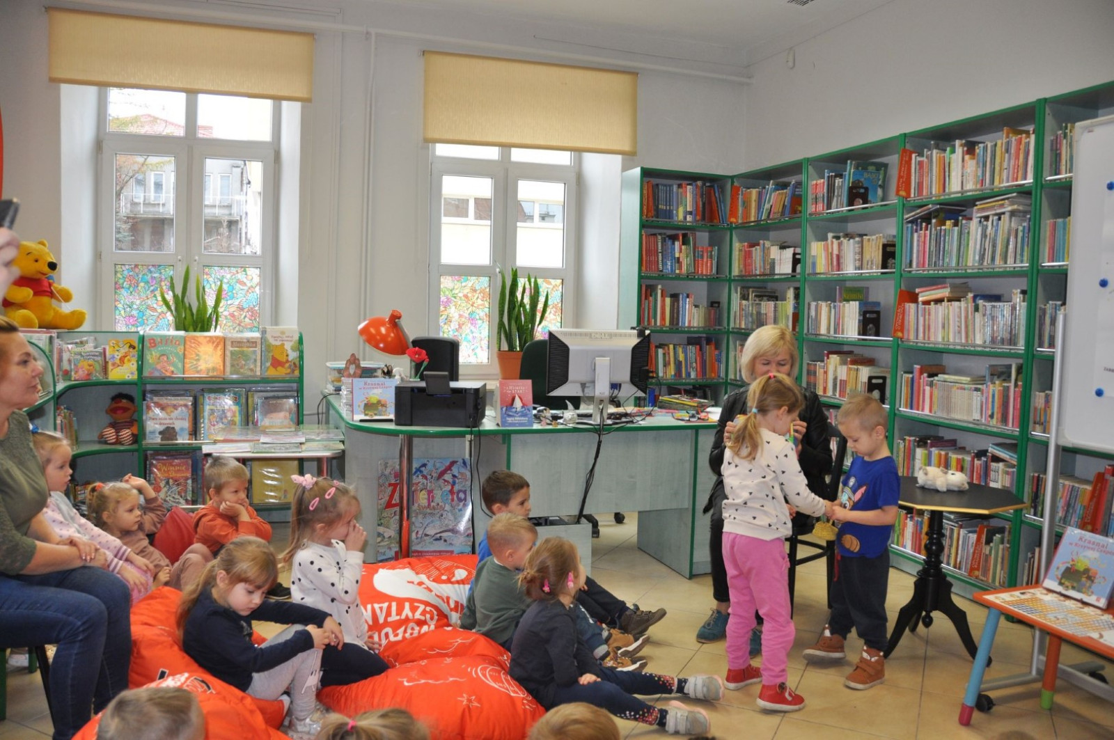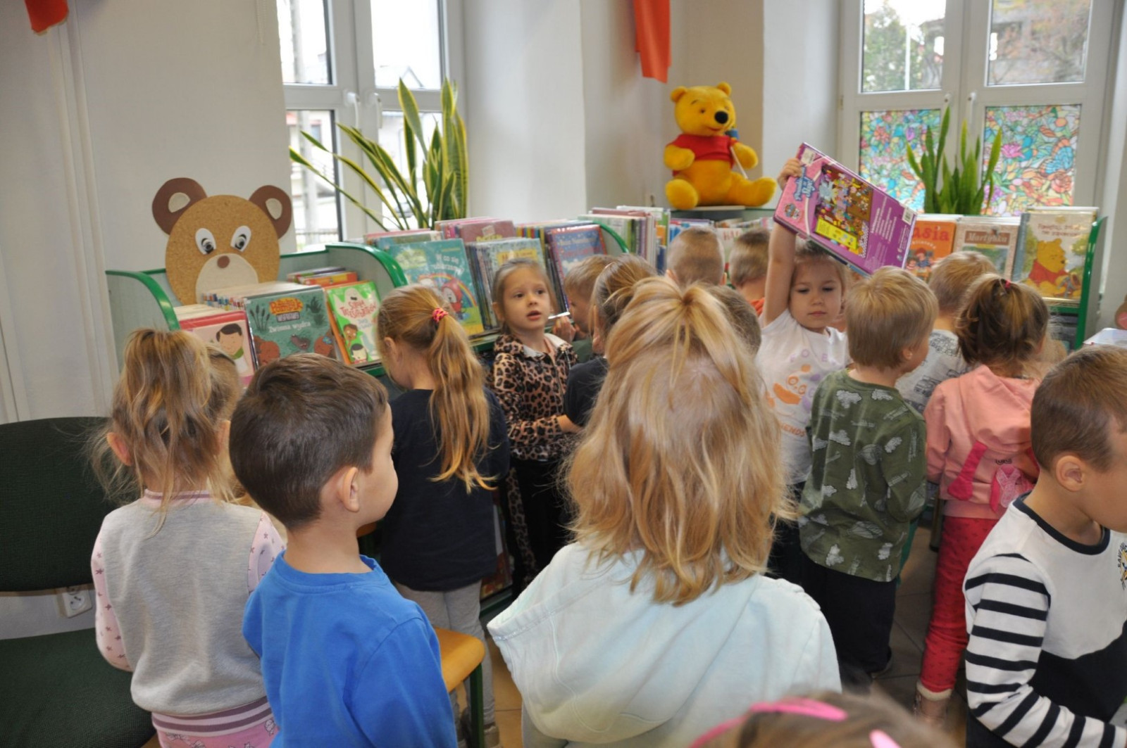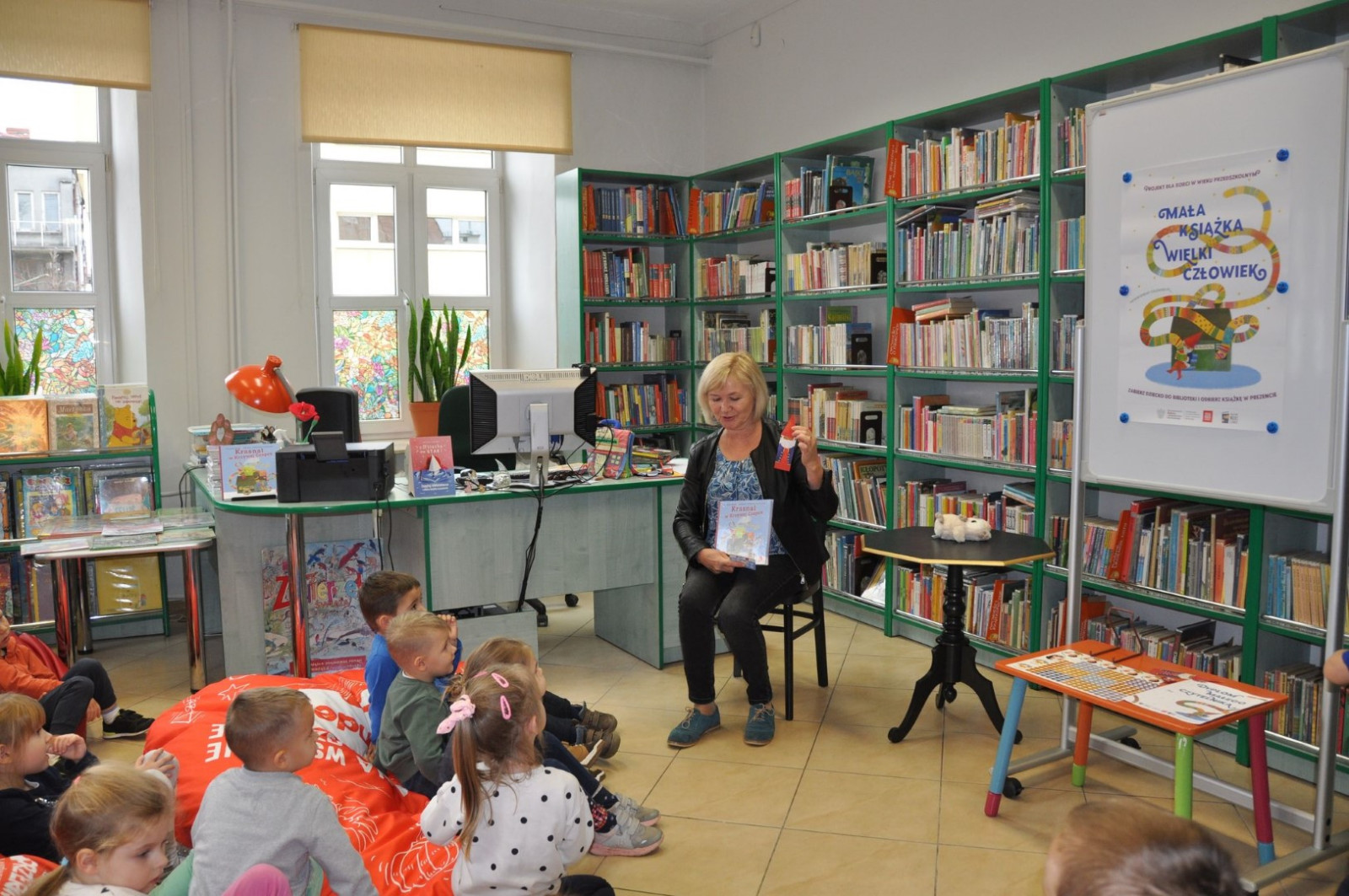 Na początku spotkania bibliotekarka przeczytała książkę Anity Głowińskiej pt.: „Kicia Kocia w bibliotece”. Przedszkolaki dowiedziały się co można robić w bibliotece poza wypożyczaniem książek, kim jest autorka bajek, co to jest autograf, jak wygląda karta biblioteczna.