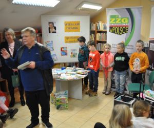 Dzieci żywo reagowały na czytane przez autora książki. Odpowiadały na zadawane przez pisarza pytania. Te najbardziej aktywne dostały naklejki i książeczki. Wszystkie dzieci mogły kupić książkę z autografem Wiesława Drabika.