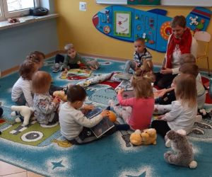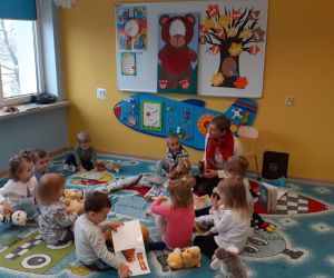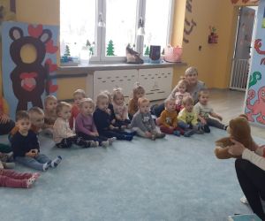 Z okazji Światowego Dnia Pluszowego Misia 25 listopada 2022 r. Filia nr 3 wzięła udział w głośnym czytaniu i spotkaniu dla dzieci z grup: „Biedronki”, „Kangurki” i „ Sówki” ze Żłobka Niepublicznego „Mali Odkrywcy” w Łęcznej. Wizycie towarzyszyła maskotka biblioteczna miś Antoś. Pani Ewa zaprezentowała dzieciom wiersz A. Wiśniewicz pt.: „Dzień pluszowego Misia” i bajkę R. Wajnera pt.: „O misiu Łasuchu i o jego wielkim brzuchu”. Dzieci dowiedziały się dlaczego Pluszowy Miś obchodzi urodziny 25 listopada. „Mali Odkrywcy” mogli obejrzeć książeczki z bajkami o misiach i poznać imiona różnych misiów znanych na całym świecie i pochodzących z różnych krajów. Dzieci zgadywały z jakiej bajki lub książki pochodzi dany miś. Najbardziej znany dzieciom był Kubuś Puchatek, a Misia Paddingtona mogły poznać po niebiesko - czerwonym ubranku. Popularnego polskiego misia czyli Misia Uszatka z klapniętym uszkiem – rozpoznały z piosenki i bajki o Misiu Uszatku. Razem z prowadzącą zaśpiewały piosenkę „ Jestem sobie mały miś…” oraz „Jadą, jadą misie…”. Chętne przedstawiły swoje misie i maskotki. Każdy mógł przytulić i uścisnąć łapkę pluszowego misia Antosia. Na zakończenie pani Ewa otrzymała piękne podziękowanie, misiową laurkę od wszystkich grup uczestniczących w spotkaniu.