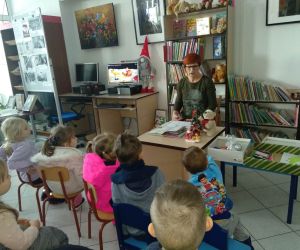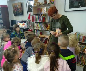 21 grudnia dzieci z grupy” Kotki” ‘z Przedszkola Publicznego nr 4 w Łęcznej wraz z wychowawczynią panią Katarzyną Świrk odwiedziły bibliotekę przy ul. Obrońców Pokoju 1 aby wziąć udział w zajęciach bibliotecznych o świętach Bożego Narodzenia. W nawiązaniu do pory roku spotkanie rozpoczęło się wysłuchaniem piosenki „Zima, zima, zima, pada, pada śnieg” i wierszem Doroty Gellner pt.” Lodowy pociąg”.
