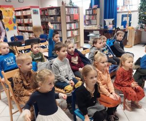 Bibliotekarka, Krystyna Skoczylas, na powitanie przeczytała dzieciom wiersz Władysława Bełzy pt.: „Dzieciom na nowy Rok”. Następnie powiedziała dzieciom co należy zrobić, by stać się czytelnikiem biblioteki; jak założyć kartę biblioteczną by móc wypożyczać książki.
