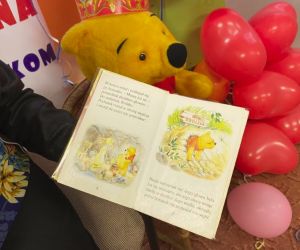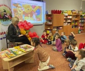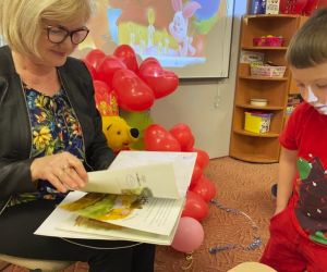 Było głośne czytanie książeczki "Za dużo miodu", zagadki, Puchatkowe kolorowanki oraz wypożyczanie Kubusiowych książek.