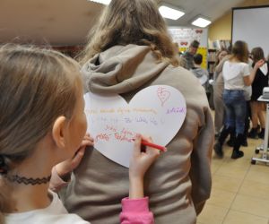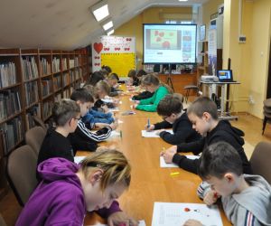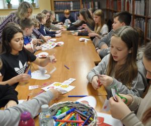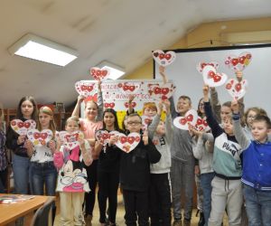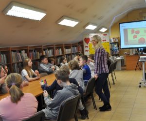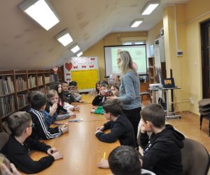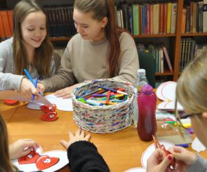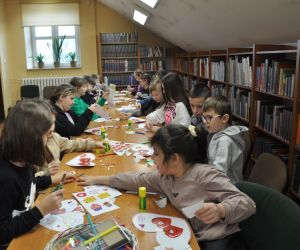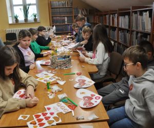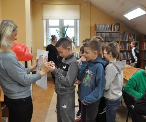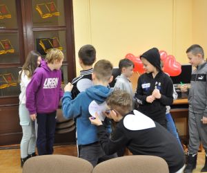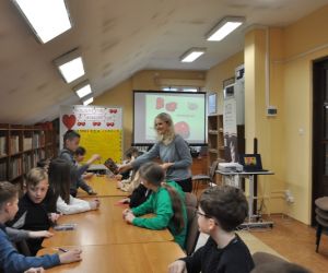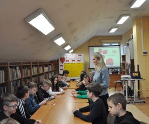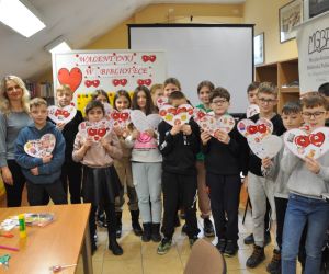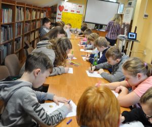 14 lutego obchodziliśmy walentynki czyli święto miłości, radości, życzliwości i przyjaźni. Z tej okazji Bibliotekę przy ulicy Bożnicznej odwiedziły klasy 5 A i 4 E ze Szkoły Podstawowej nr 2 w Łęcznej wraz z wychowawczyniami. Podczas zajęć dzieci szukały słów, które kojarzą się z walentynkami i uzupełniały nimi tablicę tytułową. Zapoznały się z historią tego święta i obejrzały film o patronie zakochanych - świętym Walentym. Uczniowie rozwiązywali qiuz walentynkowy, brali udział we wróżbach walentynkowych, czytali wiersze i życzenia walentynkowe, a następnie wykonywali nietypowe walentynki pisząc je sobie wzajemnie na kartkach w kształcie serc umieszczonych na plecach. Na koniec spotkania wszyscy ozdabiali swoje kartki walentynkowe, a wychodząc otrzymali słodkie lizaki w kształcie serc.