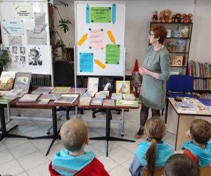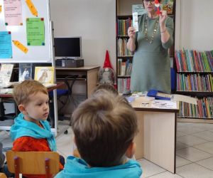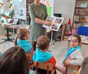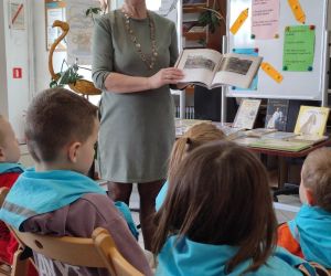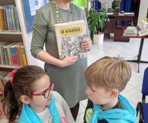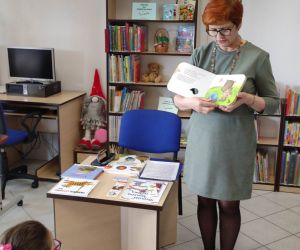 Podczas spotkania bibliotekarka Krystyna Skoczylas zachęcała dzieci do wzięcia udziału w akcji Mała książka- wielki Człowiek”.