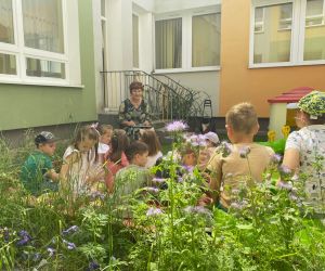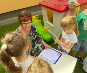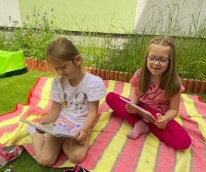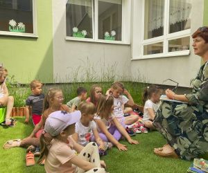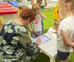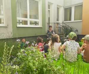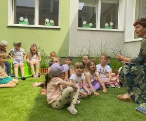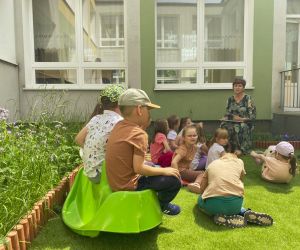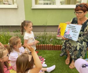 W przedszkolnym patio, w miło urządzonym ogródku, bibliotekarka wyjaśniła dzieciom co wspólnego ma książka z ogrodem.