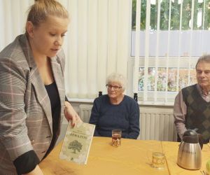 Bibliotekarka rozmawiała z seniorami o ekranizacjach takich książek jak np. „Dewajtis” Marii Rodziewiczównej, „Pamiętnik” Nicholasa Sparks’a , cykl „Stulecie Winnych” Ałbeny Grabowskiej oraz wielu innych powieści.