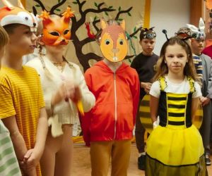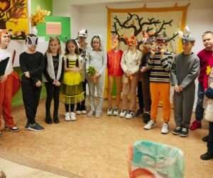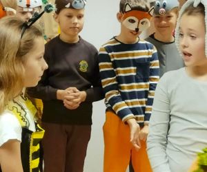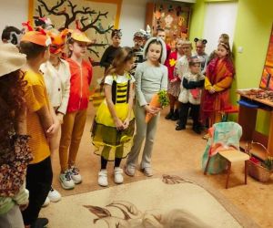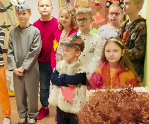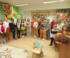 W piękny jesienny poranek 27 października 2023 r. w Filii nr 3 mogliśmy obejrzeć znakomite przedstawienie pt.: „Jesień u Fryzjera” w wykonaniu uczniów klasy 3b ze Szkoły Podstawowej nr 4 w Łęcznej pod kierunkiem pani Wioletty Tchórzewskiej. We współpracy z Filią nr 3 uczniowie przygotowali interesujące przedstawienie o jesieni na podstawie wiersza Danuty Gellnerowej pt.: „Jesień u Fryzjera”. W pięknych krasomówczych dialogach i kolorowej jesiennej scenerii przedstawili historię „pani jesieni” o zmianach zachodzących w przyrodzie i zachowaniach zwierząt o tej porze roku. W ciekawy i profesjonalny sposób opowiedzieli widzom: słowem, muzyką oraz kolorowymi strojami najpiękniejsze cechy jesieni. Wszyscy słuchacze byli oczarowani lekkością i kunsztem gry aktorskiej klasy 3 b. Przedstawieniu towarzyszyła wystawa prac uczniów pod tym samym tytułem. Wśród zaproszonych gościliśmy panią Dyrektor biblioteki Monikę Mazurkiewicz, panią Wicedyrektor Szkoły Podstawowej nr 4 w Łęcznej Bożenę Grzesiuk , uczniów z klasy 0 d ze Szkoły Podstawowej nr 4, dzieci ze Żłobka Niepublicznego „Mali Odkrywcy” w Łęcznej wraz z wychowawcami oraz rodziców. Dziękujemy klasie 3 b i pani Wioletcie Tchórzewskiej za współpracę i przygotowanie wspaniałego przedstawienia, a wszystkim uczestnikom za liczne przybycie. Do zobaczenia w bibliotece.