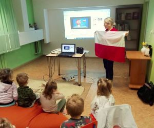 29 kwietnia 2024 r. Filię nr 3 odwiedziły dzieci z grupy „Sówki” i „Biedronki” ze Żłobka Niepublicznego „Mali Odkrywcy” w Łęcznej. Nasi goście uczestniczyli w zajęciach edukacyjnych z okazji Święta Konstytucji 3 Maja. Prowadząca opowiedziała dzieciom dlaczego obchodzimy to święto, kim jest patriota i jakie mamy polskie symbole narodowe. Mali uczestnicy obejrzeli film animowany o symbolach narodowych i Konstytucji 3 Maja. Poznali też piosenkę „Jesteśmy Polką i Polakiem”. Dzieci dowiedziały się jak wygląda flaga Polski i godło narodowe. Wszyscy razem zaśpiewali fragment hymnu narodowego Polski. Pani Ewa przeczytała dzieciom wiersz W. Bełzy „Katechizm polskiego dziecka ” i zaprosiła do wspólnego powtarzania znanego utworu. Dzieci usłyszały czym była Konstytucja 3 Maja oraz kiedy obchodzimy święto flagi. Na zakończenie mali goście otrzymali kolorowankę z białym orłem i obejrzeli książeczki o Polsce. Dziękujemy wszystkim za udział. Do zobaczenia w bibliotece!