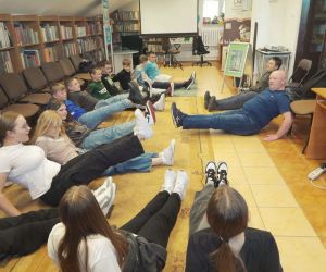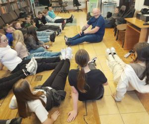 Warsztaty dla klasy 6 b ze Szkoły Podstawowej Nr 2 w Łęcznej poprowadził Pan Krzysztof Zadrożny, zaprzyjaźniony czytelnik naszej Biblioteki, który jest instruktorem sztuk walki. Pan Krzysztof jest posiadaczem czarnego pasa w Aikido oraz niebieskiego pasa w systemie walki opracowanego do samoobrony Krav Maga, wieloletnim pracownikiem branży ochroniarskiej.