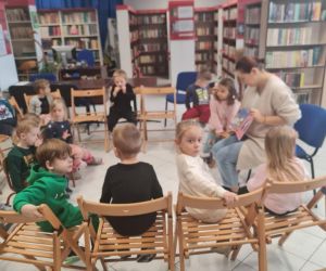 W dniu 16 stycznia dzieci z Przedszkola Publicznego nr 4 z grupy „Słoneczka” po raz pierwszy odwiedziły naszą Filię nr 2. Dzieci odbyły też małą wycieczkę po bibliotece zapoznając się nie tylko z książkami dla najmłodszych. . Wspólnie omówiliśmy w jaki sposób książeczki lubią być traktowane i czytane. Bibliotekarka przeczytała przedszkolakom opowiadanie pt. „Kicia Kocia w bibliotece” autorstwa Anity Głowińskiej.