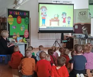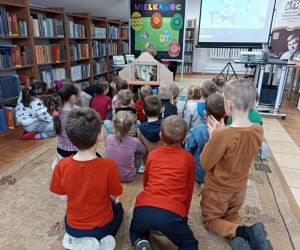 W dniu 14 kwietnia 2025 r. w Bibliotece przy ul. Bożnicznej 21 odbyły się wyjątkowe zajęcia edukacyjne pt. „Wielkanocne opowieści i zwyczaje”, w których uczestniczyły dzieci z grupy 0 B ze Szkoły Podstawowej nr 2 w Łęcznej. Spotkanie rozpoczęło się od wysłuchania piosenki „Są takie święta”, która wprowadziła dzieci w świąteczny nastrój nadchodzącej Wielkanocy. Następnie mali goście obejrzeli bajkę „Wielkanocny zajączek” w formie teatru Kamishibai, co wzbudziło wiele emocji i zaciekawienia. Kolejnym punktem programu był krótki film edukacyjny „Wielkanoc dla dzieci”, który w przystępny sposób przybliżył najmłodszym tradycje i symbole wielkanocne. Nie zabrakło również zabaw: dzieci chętnie brały udział w grze „Prawda – fałsz”, rozwiązywały zagadki wielkanocne, a także radośnie uczestniczyły w zabawie ruchowej „Skaczące stópki”. Na zakończenie spotkania dzieci wysłuchały wiersza Małgorzaty Strzałkowskiej pt. „Wielkanoc”, po czym wspólnie złożyliśmy sobie serdeczne, świąteczne życzenia. Dziękujemy za obecność i wspólnie spędzony czas!