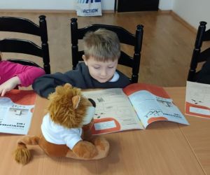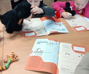 W piątek Filia nr 1 wraz z klasą 0A ze Szkoły Podstawowej nr 2 i jej wychowawcą Panią Emilią Romaniuk –Formelą rozpoczęła realizację projektu Nasza Mała Biblioteka – Ezop Pierwsze spotkanie zaczęliśmy od czytania książki pt.” Dziewczynka i Miś” autorstwa Vane Kosturnov”a pochodzącego z Macedonii Północnej. Każdy uczestnik spotkania otrzymał swój egzemplarz „Łamigłówek Literackich” pełen zadań, rebusów i ciekawych zagadek. Dzieci wykonały piękne prace plastyczne przedstawiające kolorowe laleczki.