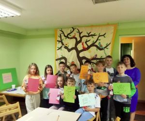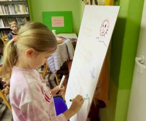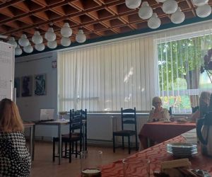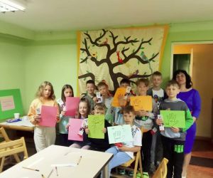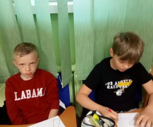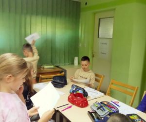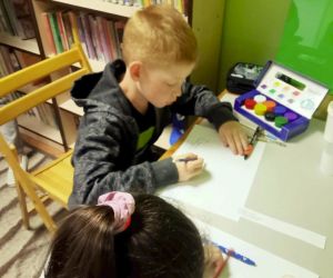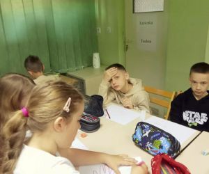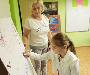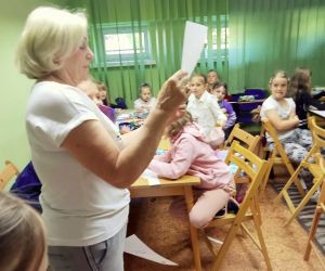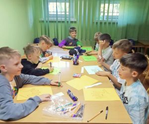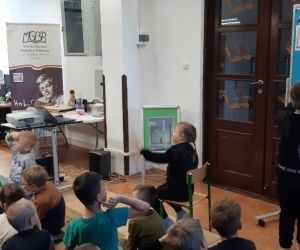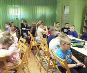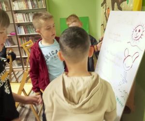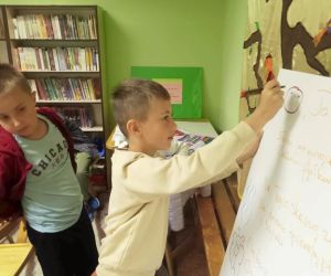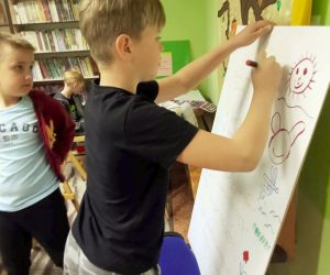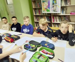 „Piszę wiersze, maluję i tworzę mapy myśli - jestem kreatywny” pod takim hasłem w Filii nr 3, 9 maja 2024 r. odbyły się warsztaty literacko – plastyczne, w których wzięła udział klasa II e z wychowawczynią Ewą Żelechowską ze Szkoły Podstawowej nr 4 w Łęcznej. Z okazji Tygodnia Bibliotek nasi goście przenieśli się do naszej „bibliotecznej warsztatowni”, gdzie wspólnie z bibliotekarką tworzyli mapy myśli, pisali wiersze i malowali. Pani Ewa przeczytała dzieciom książkę „Wypożyczalnia skrzydeł” Iwony Pietrzak – Płachty i wiersz „Wiosenne słońce” – Tadeusza Kubiaka. Zainspirowani niezwykłym opowiadaniem i optymistycznym utworem poetyckim uczniowie sami napisali piękny wiersz. Na początku dzieci namalowały swoją dłoń, następnie pod kierunkiem pani Ewy poznały czym jest Haiku. Uczniowie czytali dowolnie wylosowane HAIKU i prezentowali je. W kolejnym etapie same przestąpiły do pisania własnych wyrazów, zdań i wersów. Prowadząca pokazywała dzieciom ciekawe ilustracje, które pobudzały wyobraźnię uczestników. Każdy uczeń mógł dowolnie napisać HAIKU i jednocześnie malować obok swoje skojarzenia. Kiedy uwolnione myśli poprowadziły zdolne ręce i umysły do napisania HAIKU każdy z małych poetów chętnie zaprezentował swój utwór. Praca szła naszym uzdolnionym gościom wyjątkowo sprawnie i kreatywnie dlatego nie poprzestaliśmy na HAIKU, a prowadząca zaproponowała dzieciom napisanie dłuższego utworu poetyckiego. Pani Ewa wymyśliła tytuł, a uczniowie napisali wszystkie wersy. Zaczęliśmy od mapy myśli poprzez Haiku a skończyliśmy na pięknym wierszu pt.: „ Ta chwila.” Aby dopełnić wspólnego dzieła uczniowie namalowali ilustracje do wiersza, które opisywały ich uczucia i skojarzenia z treścią powstałego dzieła. Warsztaty uwolniły kreatywne myślenie oraz talenty poetyckie i ilustratorskie naszych uczestników.