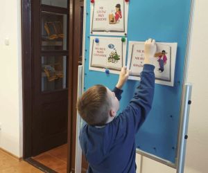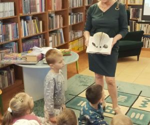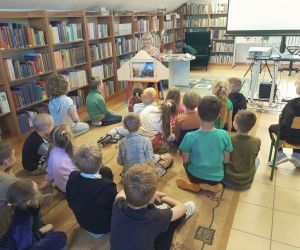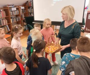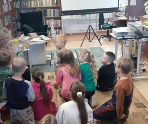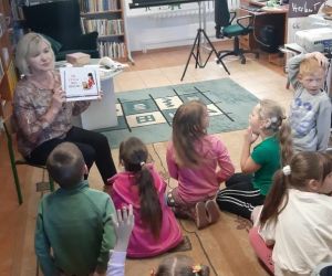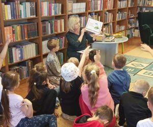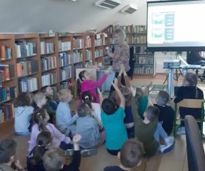 Podczas spotkania był czas na zabawy dydaktyczne, recytację wiersza z rekwizytami oraz piosenki o bibliotece. Uczniowie poznali prośby książki oraz ciekawostki biblioteczne np: najstarszą , najmniejszą , największą czy najgrubszą książkę znajdującą się w naszej Bibliotece. Ważnym momentem było obejrzenie filmu pt. „Warto czytać”, który pozwolił zrozumieć, że czytanie książek to nie tylko rozrywka, to przede wszystkim odkrywanie i poznawanie czegoś nowego.