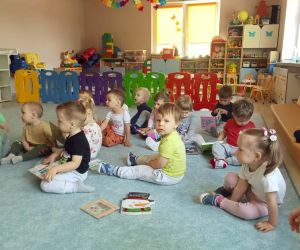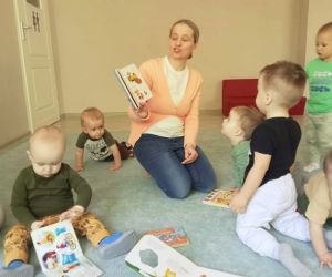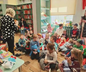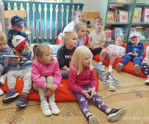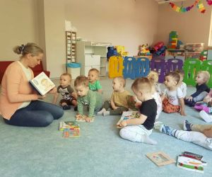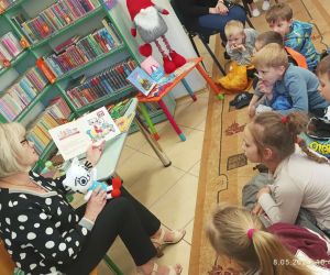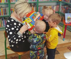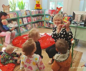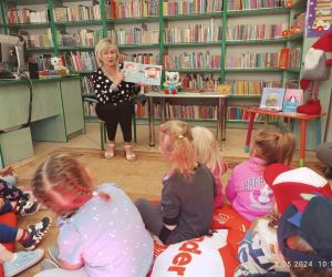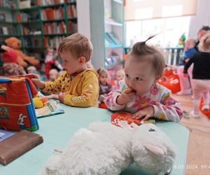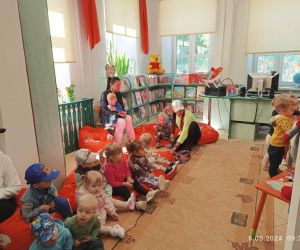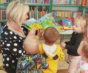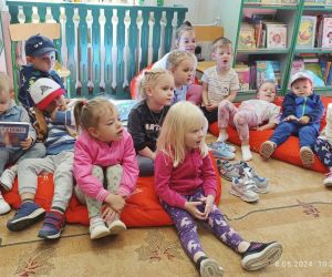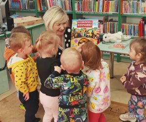 8 maja 2024 r. z okazji Tygodnia Bibliotek bibliotekarka z Filii nr 3 odwiedziła najmłodsze dzieci z grupy Kangurki ze Żłobka „Mali Odkrywcy.” Maleństwa wraz z wychowawczyniami przekazały pani Ewie życzenia i piękną laurkę z okazji Dnia Bibliotekarza za które serdecznie dziękujemy. Następnie bibliotekarka opowiedziała dzieciom co to jest biblioteka i co tam robimy. Mali czytelnicy wzięły udział w głośnym czytaniu wierszy Elizy Piotrowskiej pt.: „Zabawki”, „Jedzenie”, „Dom” i „Zwierzęta egzotyczne” i wysłuchały rymowanych utworów ze zbioru: „Pierwsza książka mojego dziecka”. Dzieci poznawały urocze zabawki, potrawy oraz zwierzęta żyjące w ciepłych krajach. Maleństwa z dużą ciekawością oglądały kolorowe egzotyczne zwierzęta oraz domek z kotem i pieskiem. Na zakończenie bibliotekarka zaśpiewała z dziećmi piosenkę „Pieski małe dwa” i zachęciła do odwiedzania biblioteki. Dziękujemy za zaproszenie i do zobaczenia.