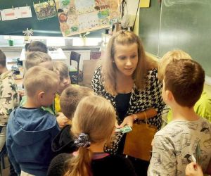 Z tej okazji skorzystała klasa I B ze Szkoły Podstawowej nr 4 Łęcznej, która wraz z wychowawczynią Marzeną Florek zaprosiła bibliotekarkę Olę (mamę jednego z uczniów) by przeprowadzić z nią wywiad. Dzieci zadawały mnóstwo ciekawych pytań np. Czy zawód bibliotekarza jest trudny i na czym polega? Czy w Łęcznej jest dużo czytelników i co najchętniej czytają. Padły również bardziej osobiste pytania np. Czy zawsze chciałam pracować w bibliotece? Od czego zaczęła się moja miłość do książek?