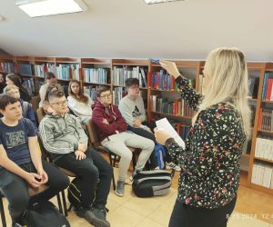 Uczniowie zwiedzili poszczególne agendy Biblioteki , zapoznali się z zasadami korzystania z księgozbioru oraz katalogiem online. Mieli również okazję obejrzeć kamienną umywalnię do rytualnego obmywania rąk, która zachowała się w budynku biblioteki z dawnego wyposażenia szkoły żydowskiej. Młodzież rozwiązywała krzyżówkę z hasłami dotyczącymi biblioteki i książek i poznała ciekawostki biblioteczne np: najstarszą , najmniejszą , największą czy najgrubszą książkę znajdującą się w naszej Bibliotece.