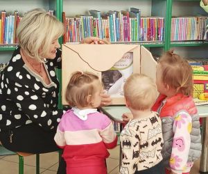 W trakcie spotkania dzieci miały możliwość zobaczenia wiele różnorodnych książek. Ogromną ciekawość wzbudziła magiczna skrzynka, czyli teatrzyk Kamishibai i bajka pt. " Kotka Psotka".