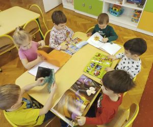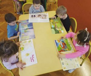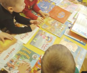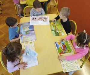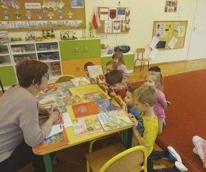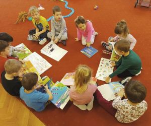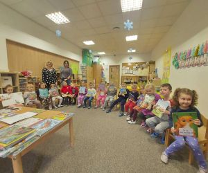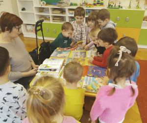 Spotkanie odbyło się w ramach akcji „Koszyk z książkami”. Po wysłuchaniu opowieści dzieci samodzielnie wybrały sobie i wypożyczyły książki do przeczytania w domu.