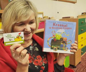 Bibliotekarka zachęciła dzieci do wzięcia udziału w projekcie” Mała książka wielki człowiek” i wręczyła zakładki do książek z logo akcji.