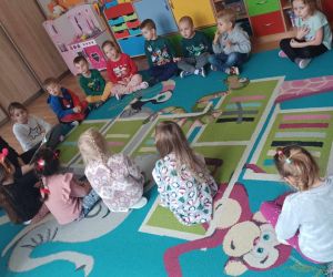 Pani bibliotekarka z Filii nr 1 w dniach 30.11-01.12.2023r odwiedziła Przedszkole Mali Odkrywcy by przeczytać książkę pt. „Franklin i pokaz magii”. Grupa 4-latków oraz 5/6-latków z zaciekawieniem wysłuchały opowieści oraz opowiedziały jakie magiczne sztuczki potrafią. Zgodnie ustaliliśmy że każdy z nas potrafi sprawić że znikają słodycze.