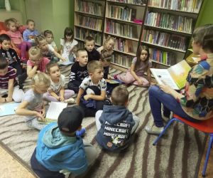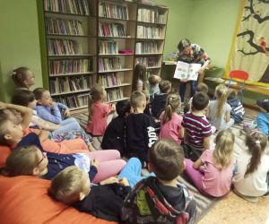 W dniu 27 września Filię odwiedziły 5-latki z grupy „ Mądre Sowy” z Przedszkola Publicznego nr 3 w Łęcznej. Dzieci zapoznały się z zasadami korzystania z biblioteki i dowiedziały się jak należy szanować książki. Bibliotekarka przeczytała im wiersze o jesieni z książki „Cztery pory roku. Wiersze dla dzieci”, a następnie rozmawiała z przedszkolakami na temat jesieni i jej barw. Dzieciom towarzyszył Miś przedszkolny, który „włączył się” do rozmowy i „był bardzo zadowolony z wizyty”. Dzieci wypożyczyły książeczki i zachęcone do odwiedzin, obiecały, że będą często odwiedzać bibliotekę.