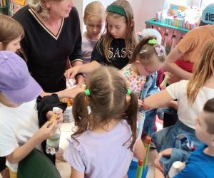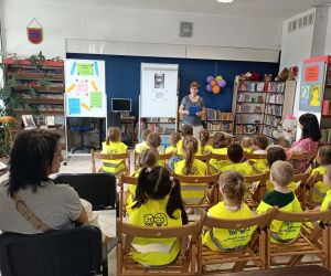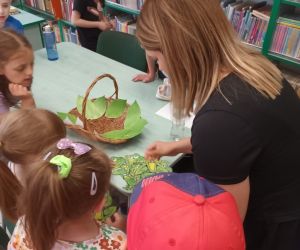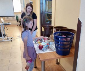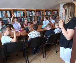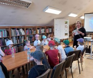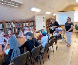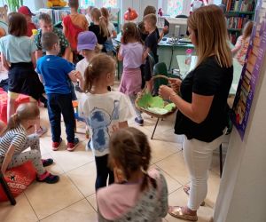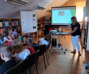 19 czerwca w Bibliotece Głównej gościliśmy uczniów klasy 1d ze Szkoły Podstawowej nr 2 im. Tadeusza Kościuszki w Łęcznej. Tematem spotkania była ekologia, ekologiczny styl życia, właściwa segregacja odpadów oraz postawy proekologiczne. Nasi Goście aktywnie wzięli udział w pogadance o tym, co każdy z nas może zrobić dla dobra ziemi i klimatu oraz z uwagą wysłuchali książeczki pt. „Segreguję śmieci. Dbam o środowisko” M. Gruca, którą przeczytała Dyrektor MGBP pani Monika Mazurkiewicz. Dzieci wspólnie rozwiązały krzyżówkę i wykonały zadanie „Posegreguj odpady we właściwy sposób”. Uczniowie klasy 1d z radością zmierzyli się z zadaniem-zagadką „Historia zaginionych żabek” i sprawnie odnaleźli wszystkie ukryte w bibliotece żabki.